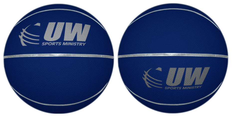 basketball with our customer's logo printed twice onto each ball.